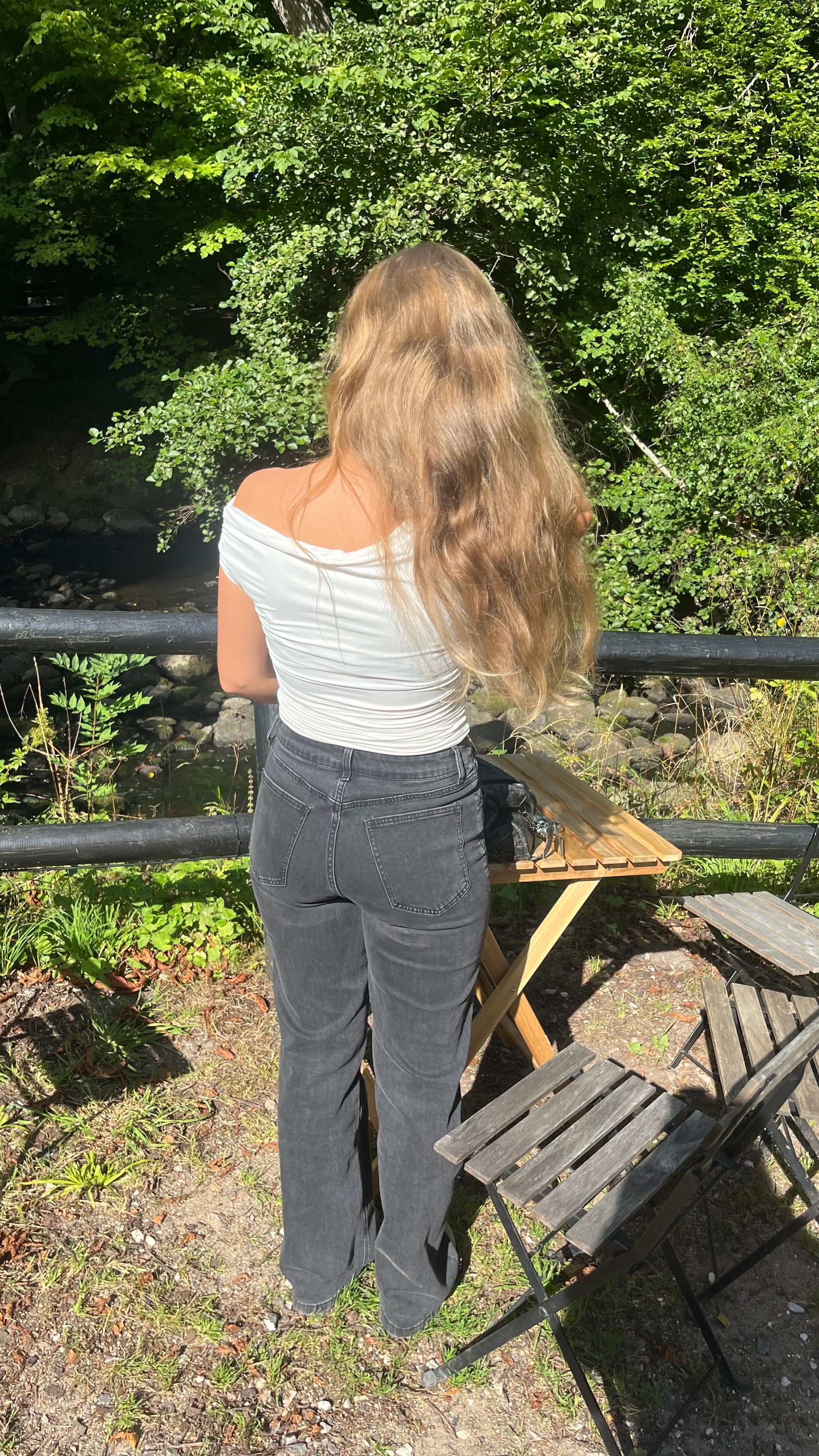 Modellen er 168 cm og bruger normalt str. S/36 og er her iført str. 38. Denne style har en lille/normal pasform. Hvis du ligger mellem to størrelser, anbefaler vi at tage den største.