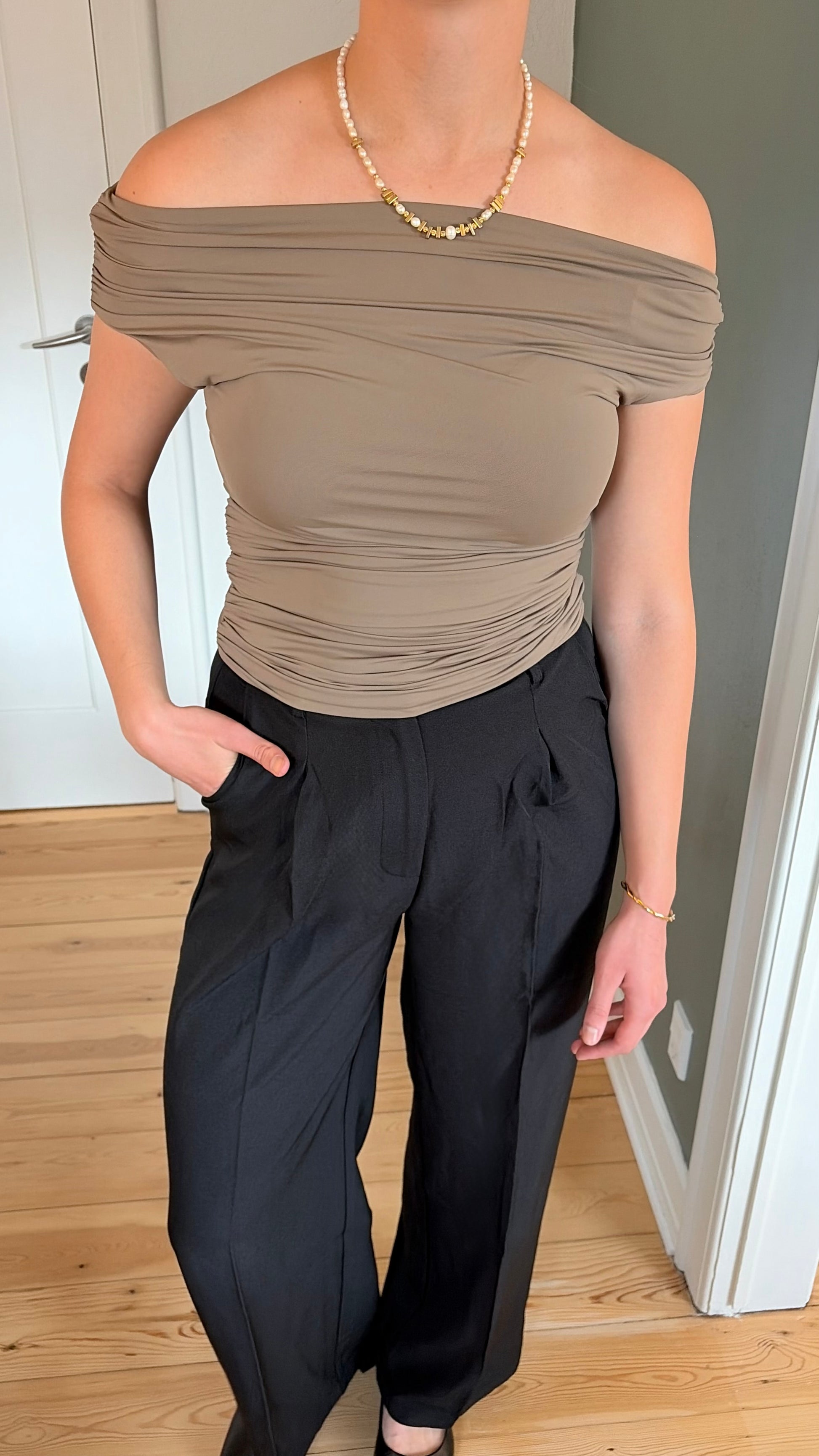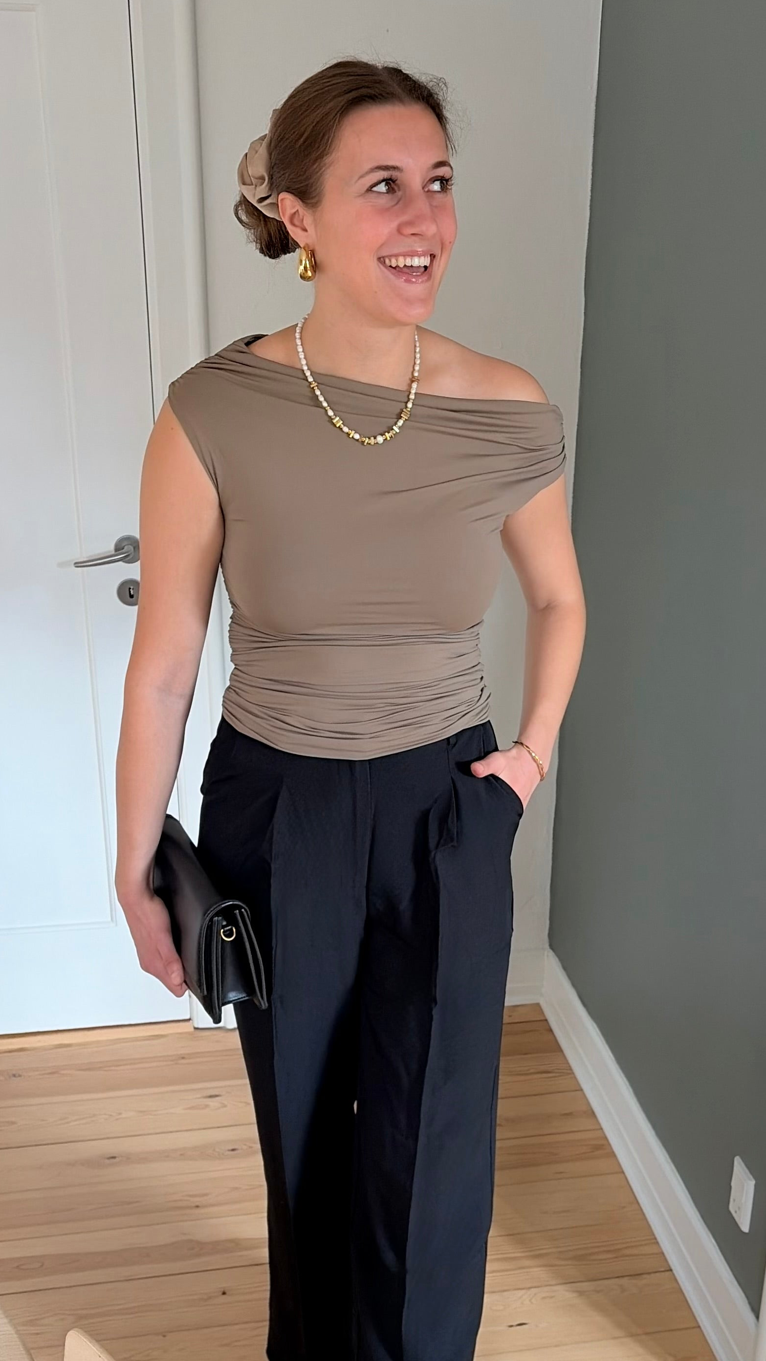 Blød og strækbar top, som kan styles på flere måder. Komfortabel og feminin til hverdagsbrug og festlige begivenheder.