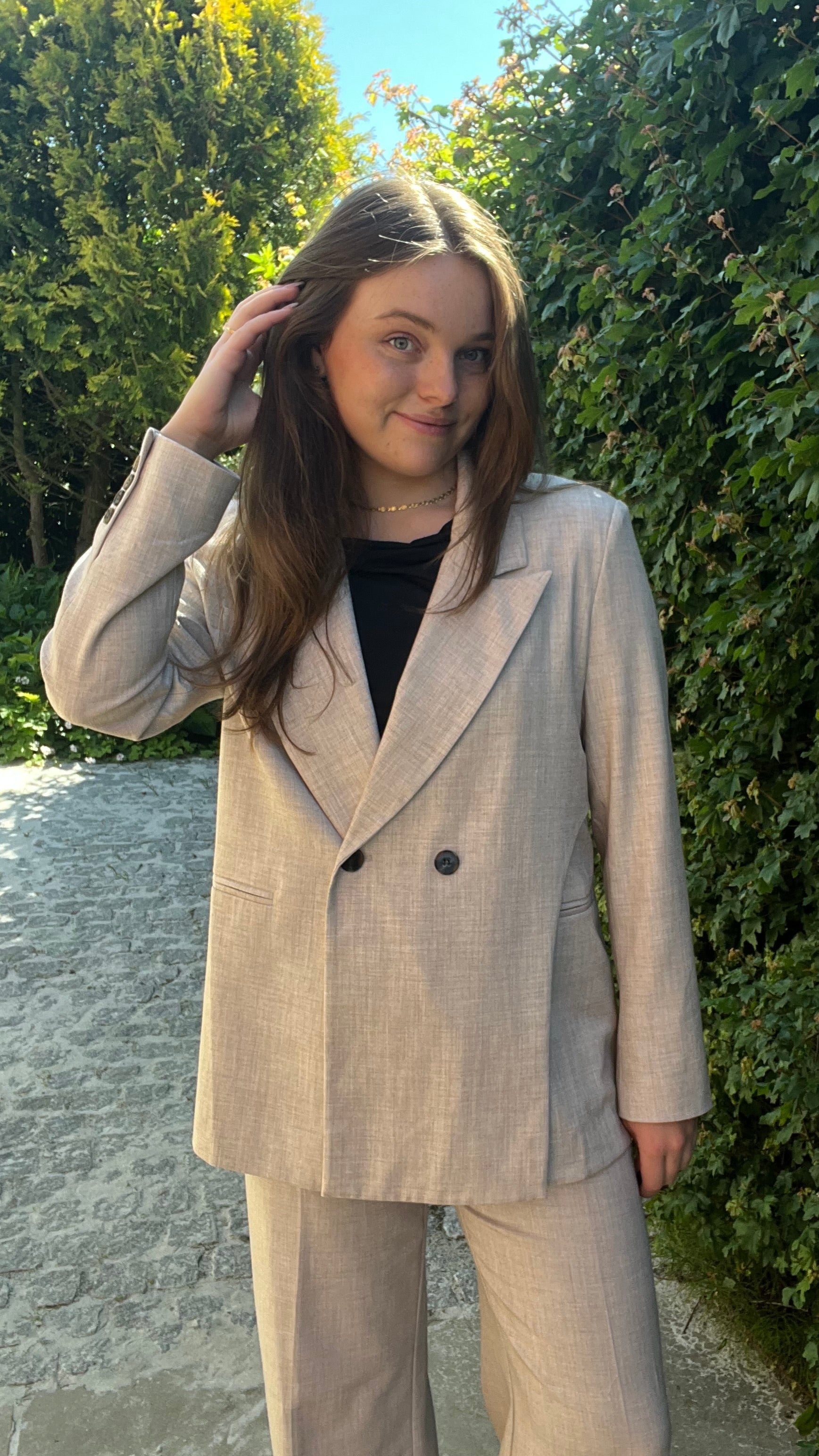 Oversize blazer med dobbelt knap-lukning og elegant frontslids.