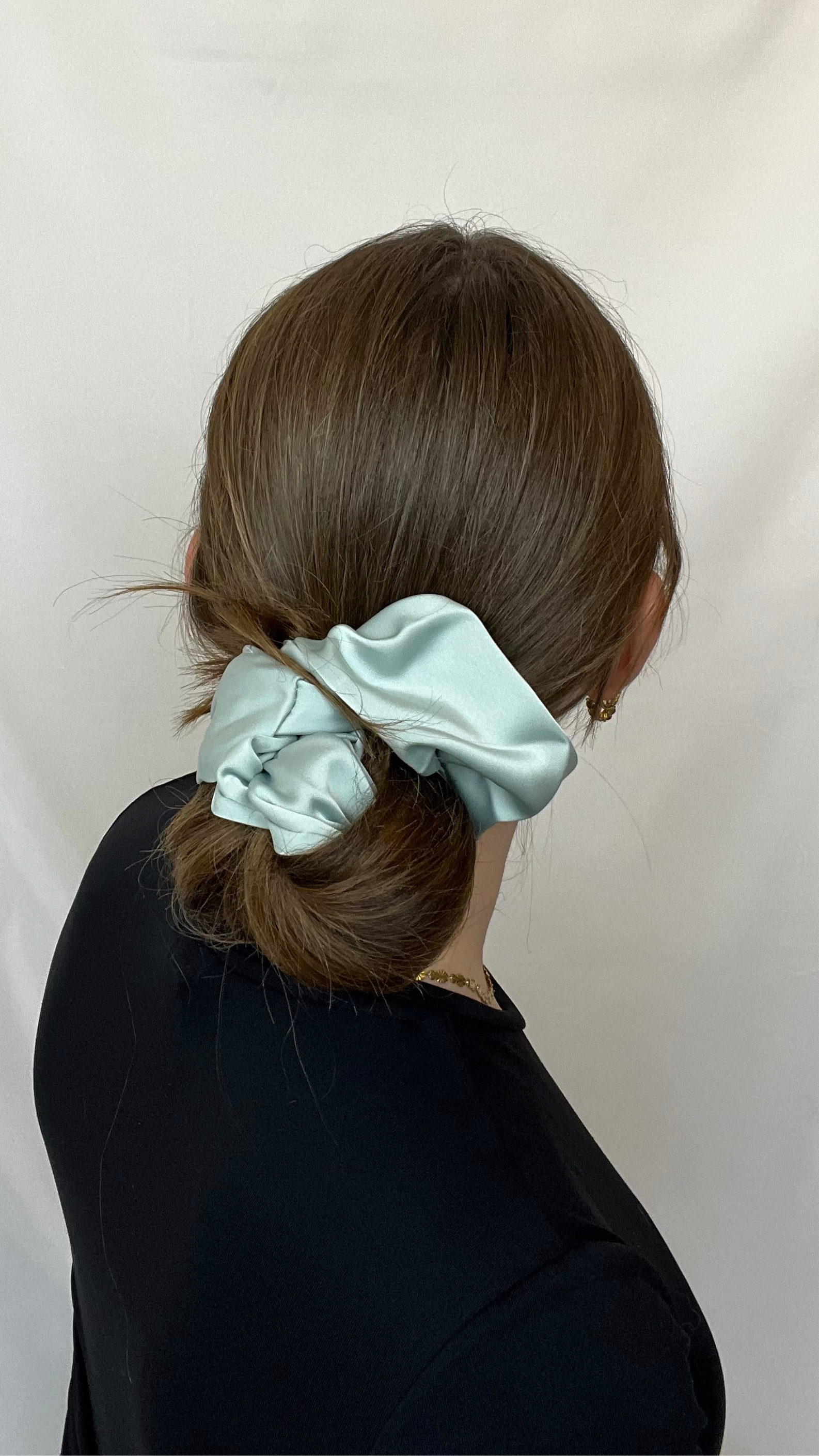 Elegant og skånsom scrunchie i satin, der beskytter dit hår mod slid, friktion og mærker. En fin og skånsom måde at sætte håret på.