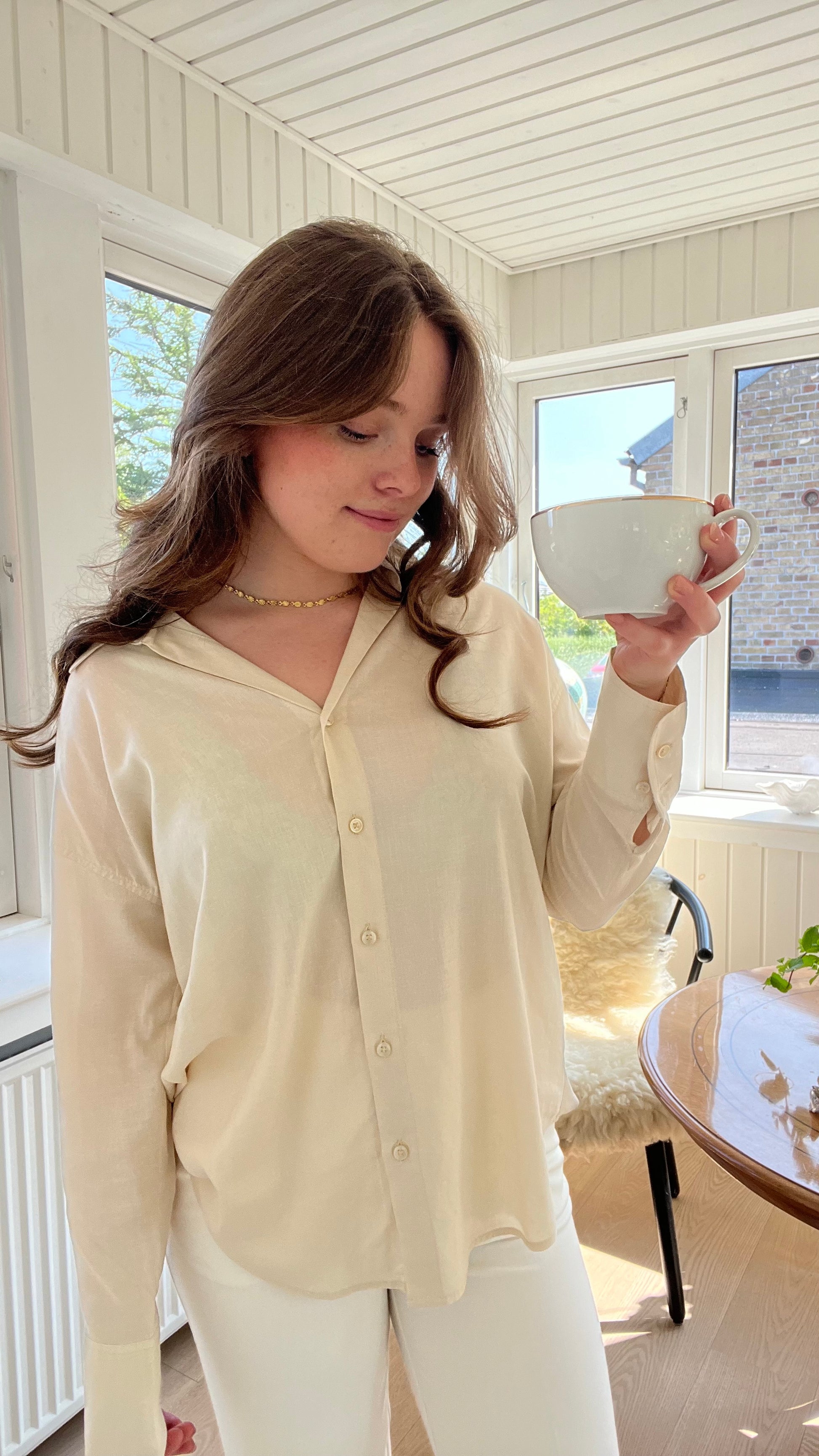 Klassisk skjorte i en blød blanding af viskose og hør. Let, behagelig og med et naturligt fald.