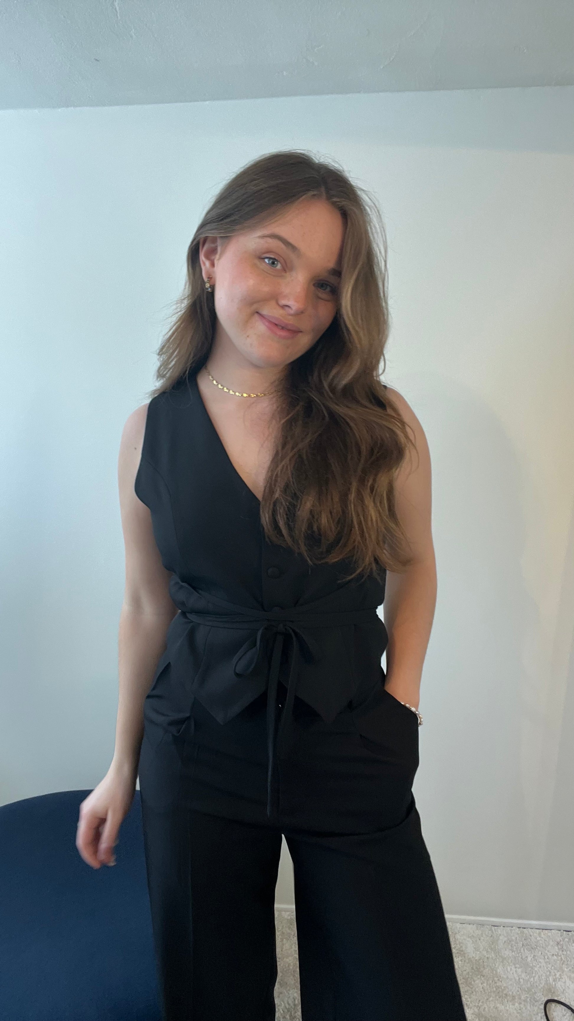 Vest med knapper og et bindebånd.