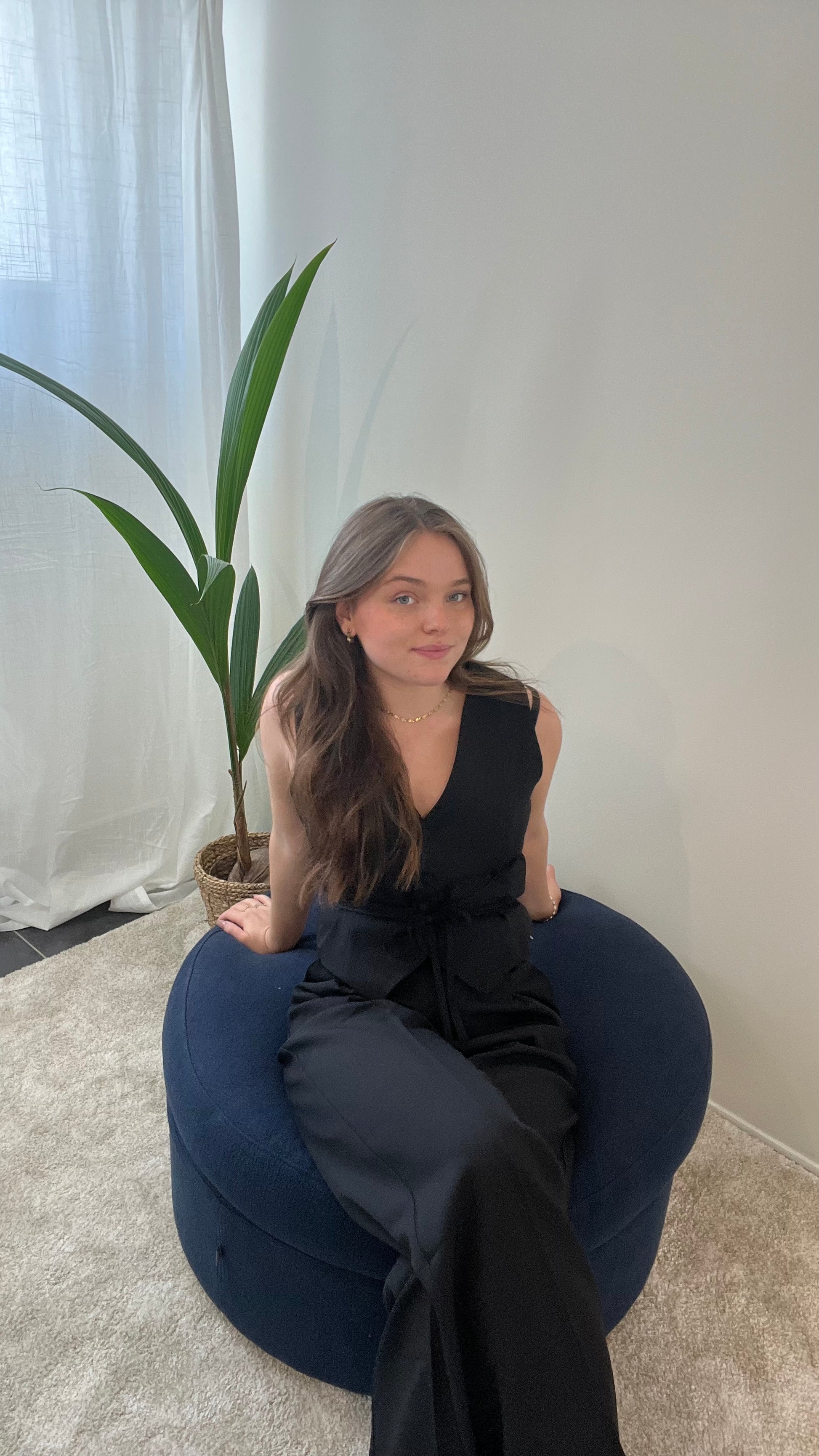 Modellen er 169 cm og bruger normalt str. M/38, og er her iført str. L. Denne style har en normal til lille pasform. Hvis du ligger mellem to str. anbefaler vi at du vælger den største.