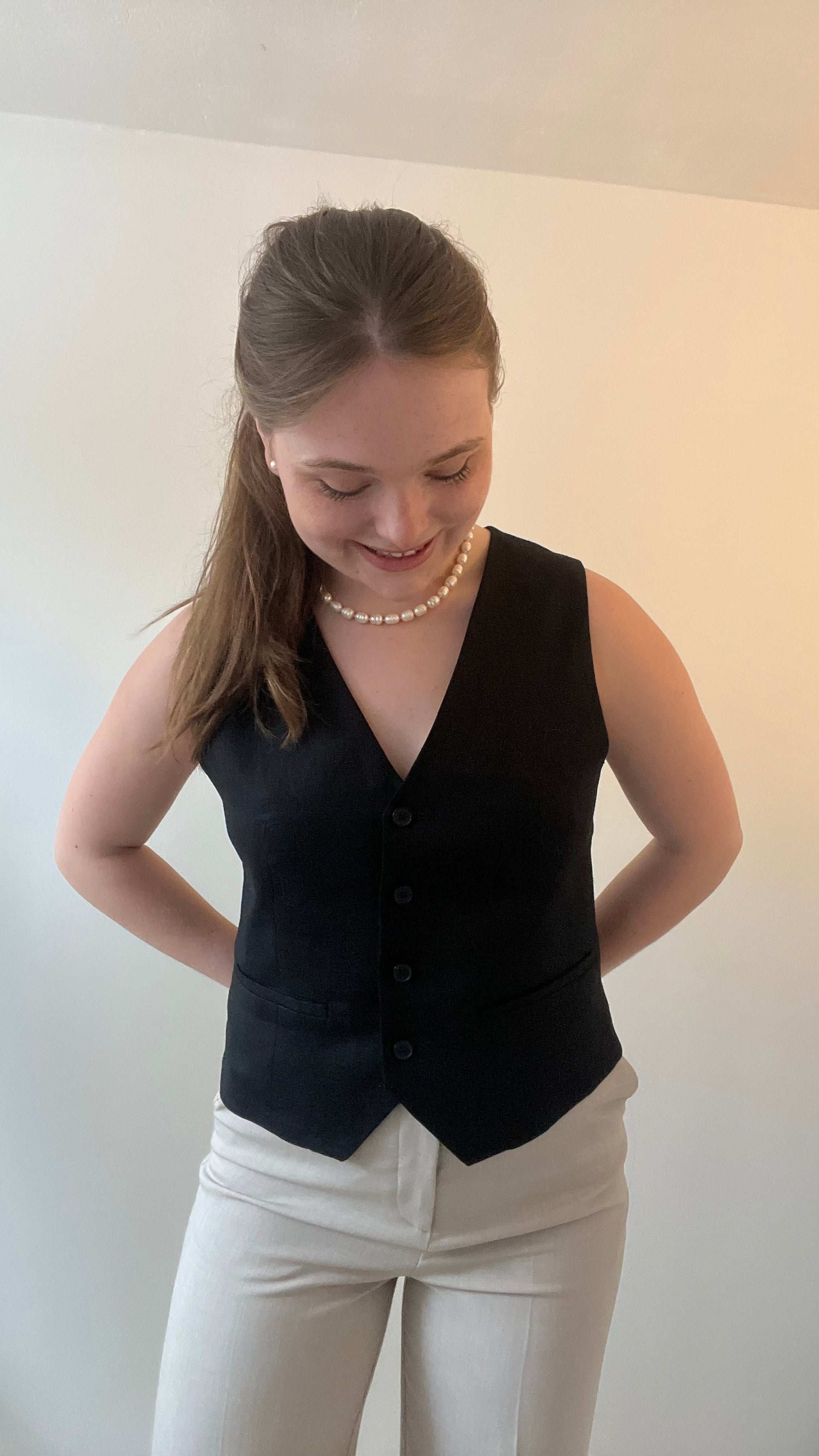 Let og stilren vest i hør – ideelt til ferien, byturen eller som et cool lag-på-lag look med en blazer eller trench coat. Kombiner med vores Ingrid shorts, og skab et et alsidigt sommersæt.